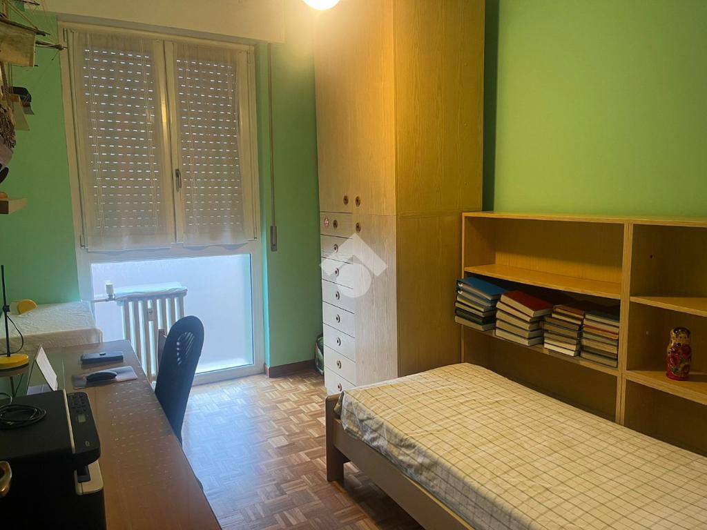 VIA CARLO MARX - All'interno di un contesto condominiale appena ristrutturato nelle parti comuni, con parti in Klinker e parti con cappotto esterno, servito da doppio ascensore, proponiamo in vendita ampio e luminoso 3 locali posto ad un piano alto, composto da ingresso, soggiorno, cucina abitabile, doppi servizi entrambi finestrati, 2 camere da letto, 2 balconi, ripostiglio e cantina. Internamente l'appartamento è in buone condizioni generali e non presenta quindi la necessità di una ristrutturazione immediata. Gli infissi sono in PVC con doppio vetro, la pavimentazione è in marmo nella zona notte e parquet nelle 2 camere ed è presente l'aria condizionata. Completa la soluzione un comodo box raggiungibile comodamente con l'ascensore in vendita ad euro 25.000,00. Libero al rogito.